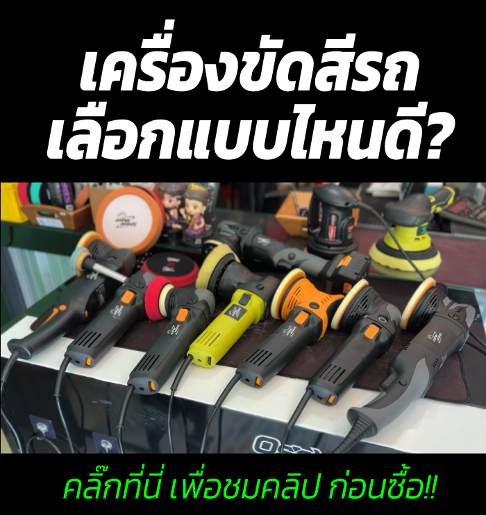 ตัดสินใจไม่ถูก เลือกซื้อเครื่องขีดสีรถแบบไหนดี ? คลิ๊กชมคลิปด้านล่าง เครื่องขัดสีรถยนต์มีกี่ระบบ เครื่องขัดสีรถแบบไร้สาย กับแบบมีสาย เลือกแบบไหนดี? เราควรคำนึงถึงเรื่องอะไรบ้าง