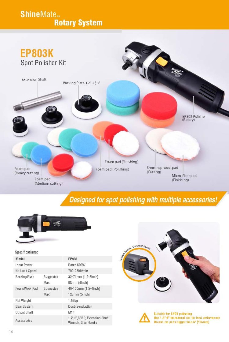 เครื่องขัดสีรถยนต์ Shine Mate รุ่นใหม่ EP804 ระบบโรตารี อัฟเกรดจากรุ่น EP803 สามารถเปลี่ยนหัวขัดสีรถได้หลากหลาย สัมผัสกำลังแรงทอร์กที่ครอบคลุมงานทุกประเภท ทนทานต่อการใช้งานหนัก รับประกันศูนย์ไทย