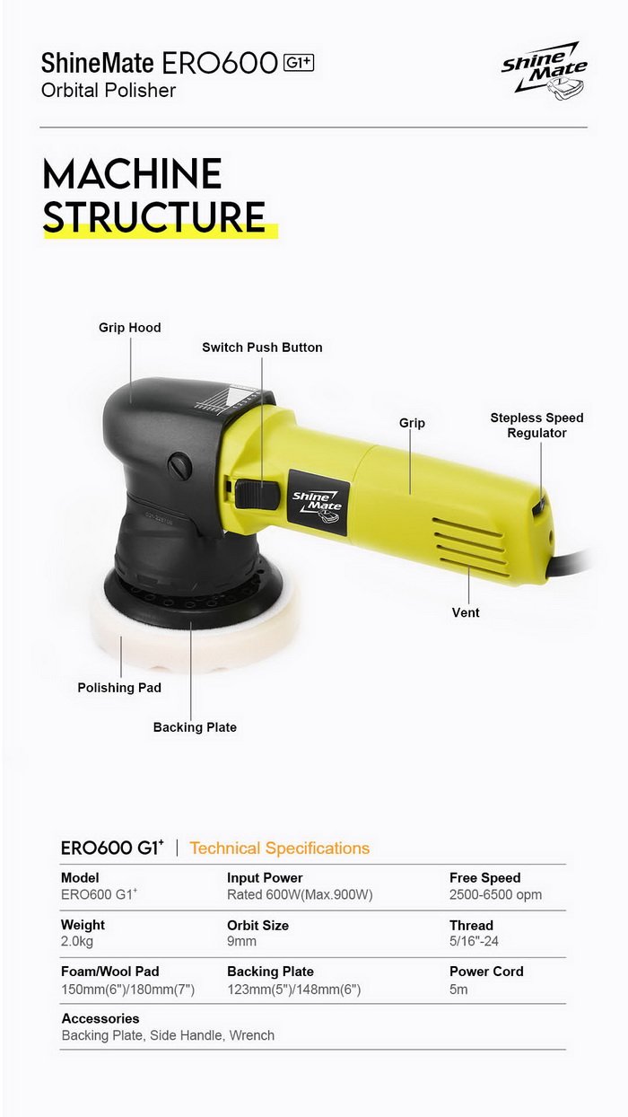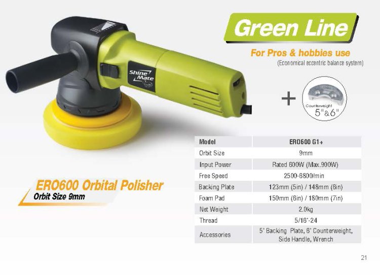 เครื่องขัดสีรถยนต์ SHINE MATE ระบบข้อเหวี่ยง Dual Action รุ่นใหม่ G1+ มีการพัฒนาไปอีกขั้น ด้วยเทคโนโลยีใหม่ล่าสุด Anti-Shake ด้วยลูกตุ้ม CNC Componets ในรุ่น G1+ มีจุดศูนย์ถ่วงที่แม่งยำ ให้การทำงานที่นุ่มนวล ลดแรงสั่นสะท้านขณะขัด น้ำหนักเบาเพียง 2.0 กิโลกรัม สามารถใส่ได้ทั้งแป้นขัดใหญ่ และเล็ก ได้รับความนิยมมากในอู่สีรถรวมถึงคาร์แคร์ อย่าเชื่อจนกว่าจะได้ลอง