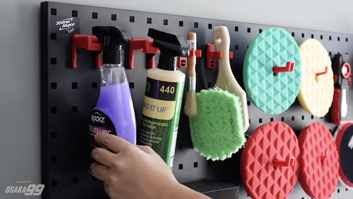บอร์ดช่วยจัดเก็บอุปกรณ์คาร์แคร์ได้หลากหลาย จัดเก็บเครื่องขัดสีรถ ฟองน้ำ ให้เป็นระเบียบ หยิบใช้งานสะดวกวัสดุคุณภาพพรีเมี่ยม ฉลุช่องแขวนด้วยระบบเลเซอร์คัท (Laser Cut) งานโชว์ในต่างประเทศ แข็งแรง ทนทาน ต้องแบรนด์ Shine Mate สามารถเข้ามาคุณภาพจริงได้ที่ร้าน